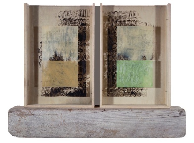 oil and newspaper on glass